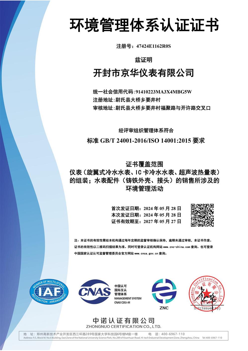 環境管理體系認證證書